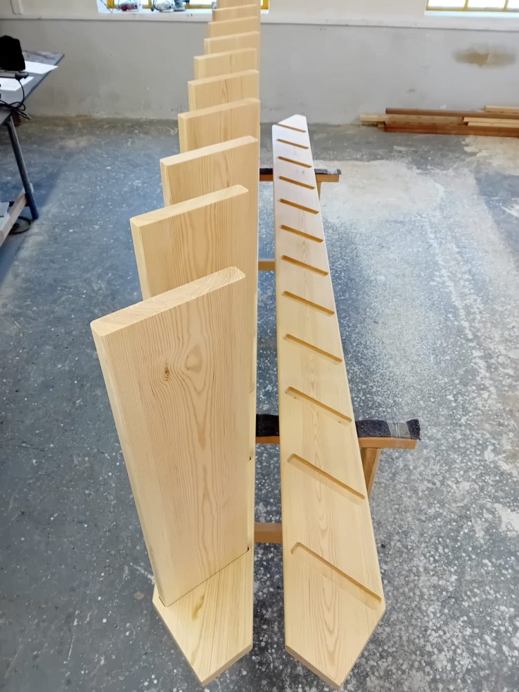 Prüfen Sie alle Stufen, bevor Sie sie tatsächlich einbauen. Da jedes Holzstück ein Original ist, wählen Sie die Fußseiten der Stufen.